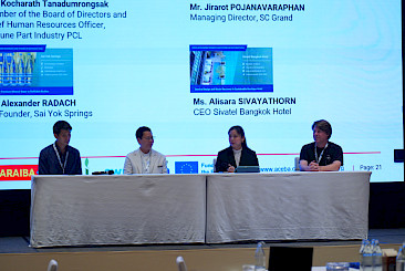 The event featured circular economy business cases from across ASEAN, providing real-world testimony that businesses can start to transition from linear to circular practices, to achieve cost savings, new business opportunities, and reduce climate and other emissions and plastic, food and other wastes. Executives of Fortune Parts Industry PCL, Sivatel Bangkok, SC Grand and Sai Yok Springs shared their experiences in adopting circular economy principles, illustrating the positive environmental and business outcomes of their sustainable business practices. These success stories provide compelling evidence for business in Thailand, showing that circularity supports both enhanced sustainability and improved business performance.